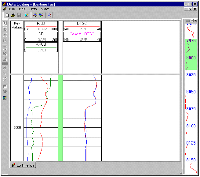 Evaluation of DTSC from RHOB, GR and RILD, input parameters